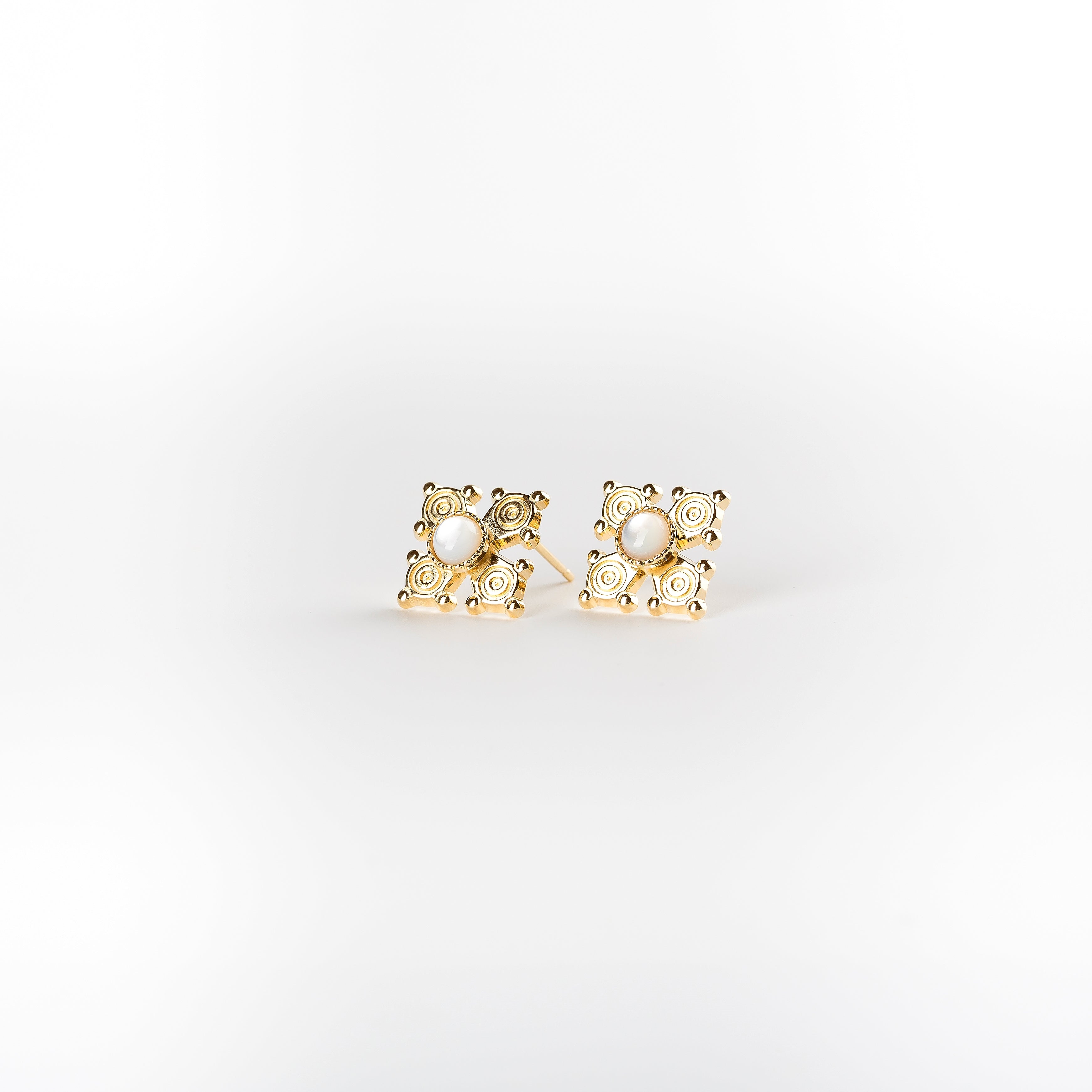Ces boucles d'oreilles, qui reprennent la forme traditionnelle de la croix de Savoie, sont en nacre et Or plaqué.