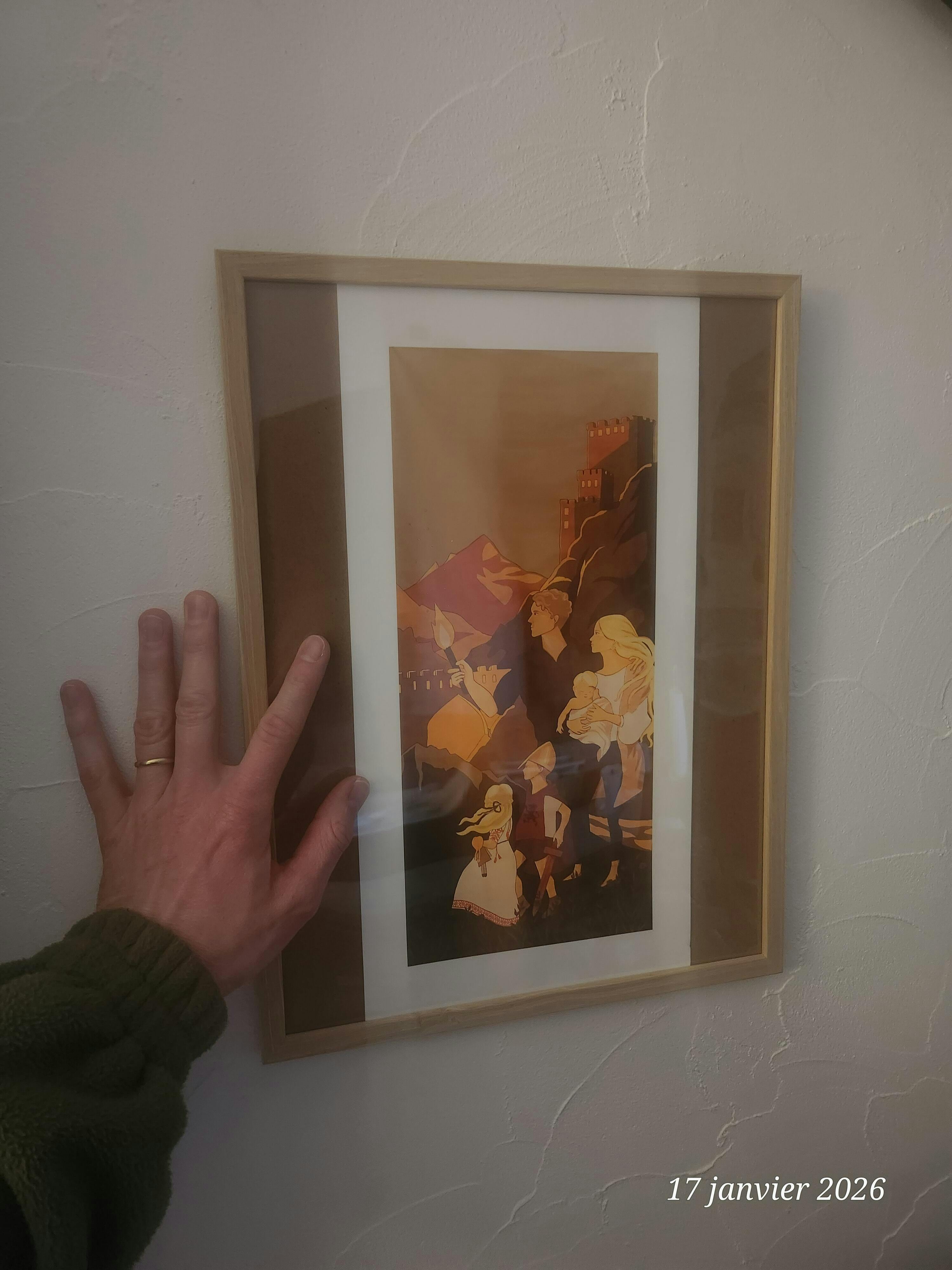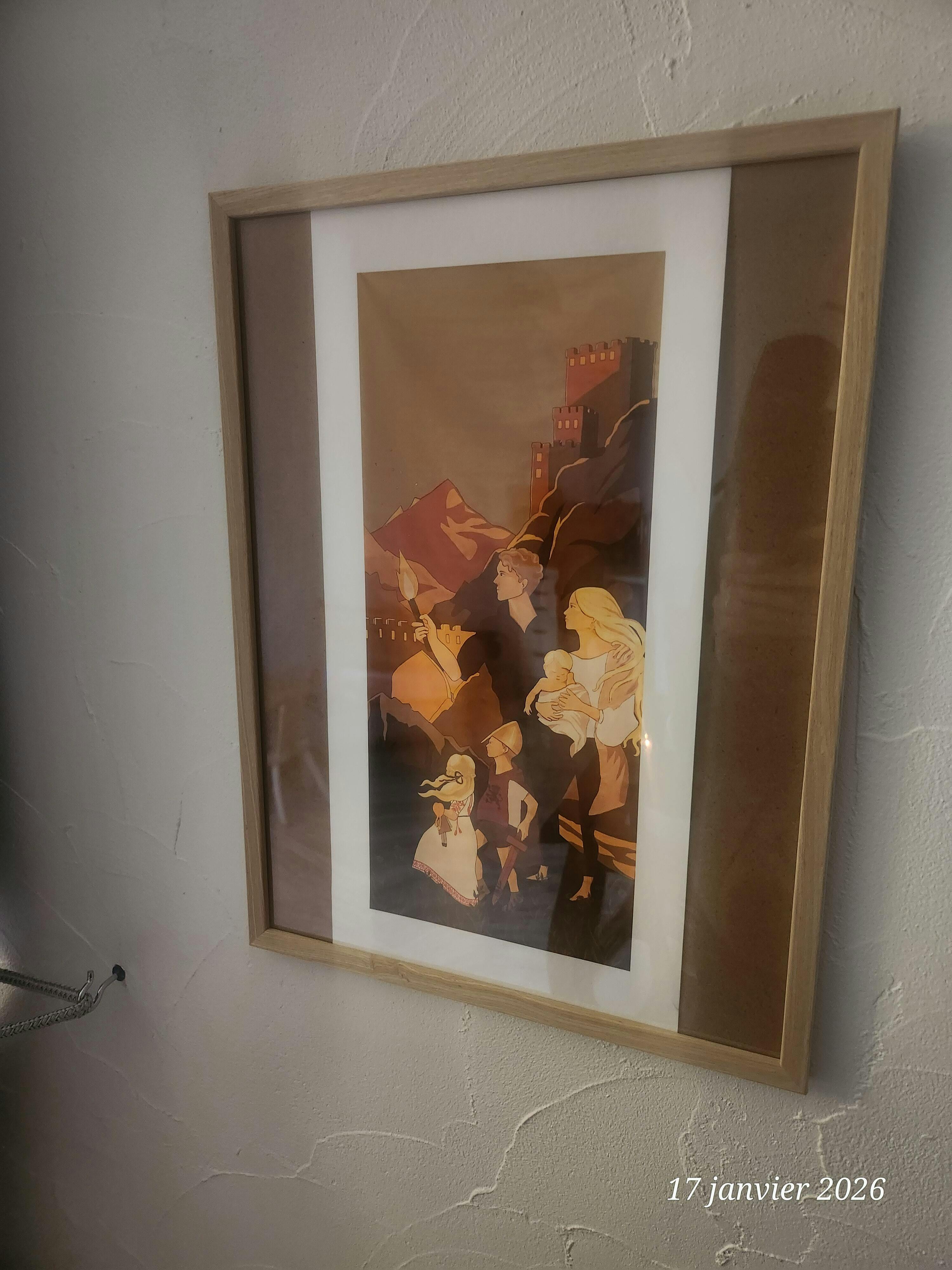 Des montagnes composent l’arrière-plan de cette tenture, symbolisant la conscience élevée de l’homme européen : le respect du sacré, le dépassement de soi, le sens à donner à sa vie.