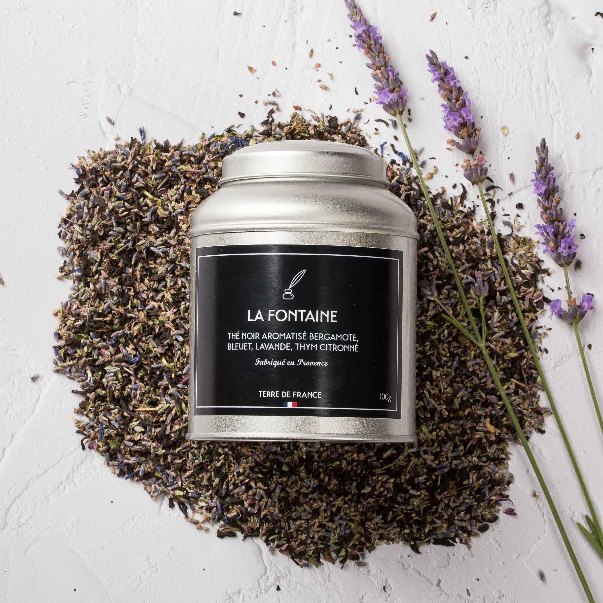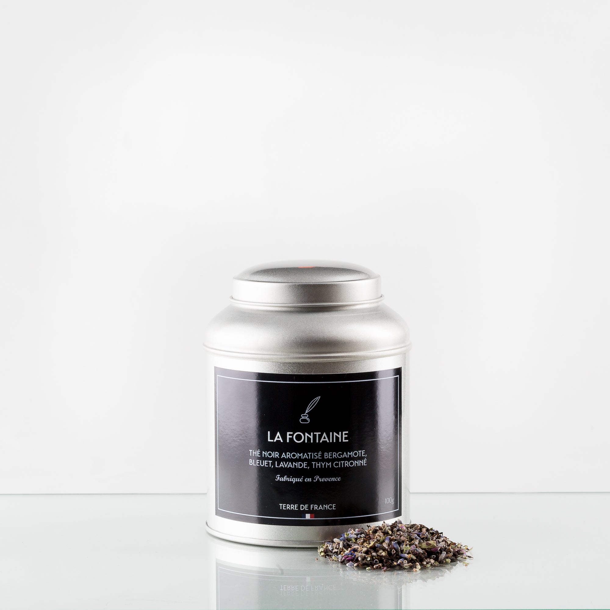 Composition : Thé noir aromatisé bergamote, Bleuet, Lavande, Thym Citronné
