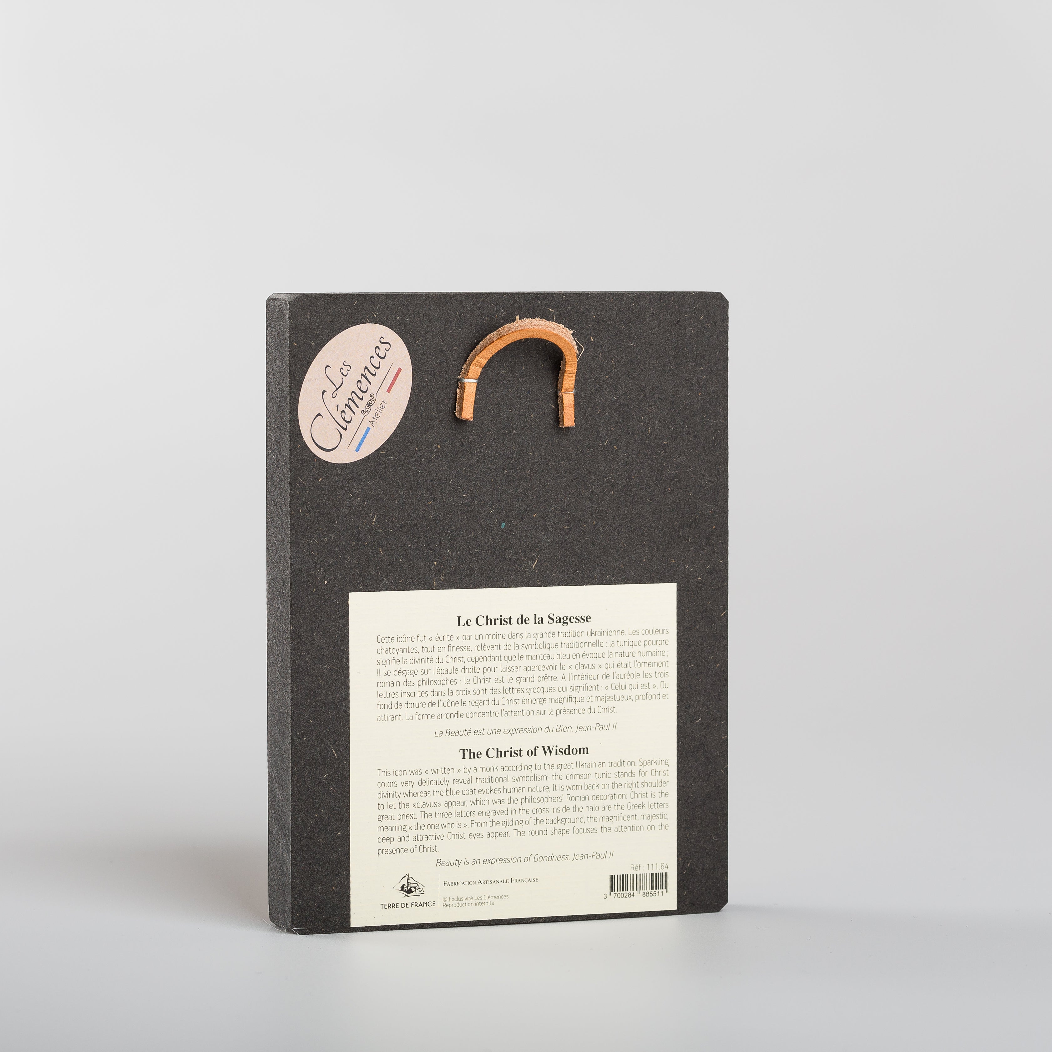 Accroche murale au dos de l'icône et chevalet en option.