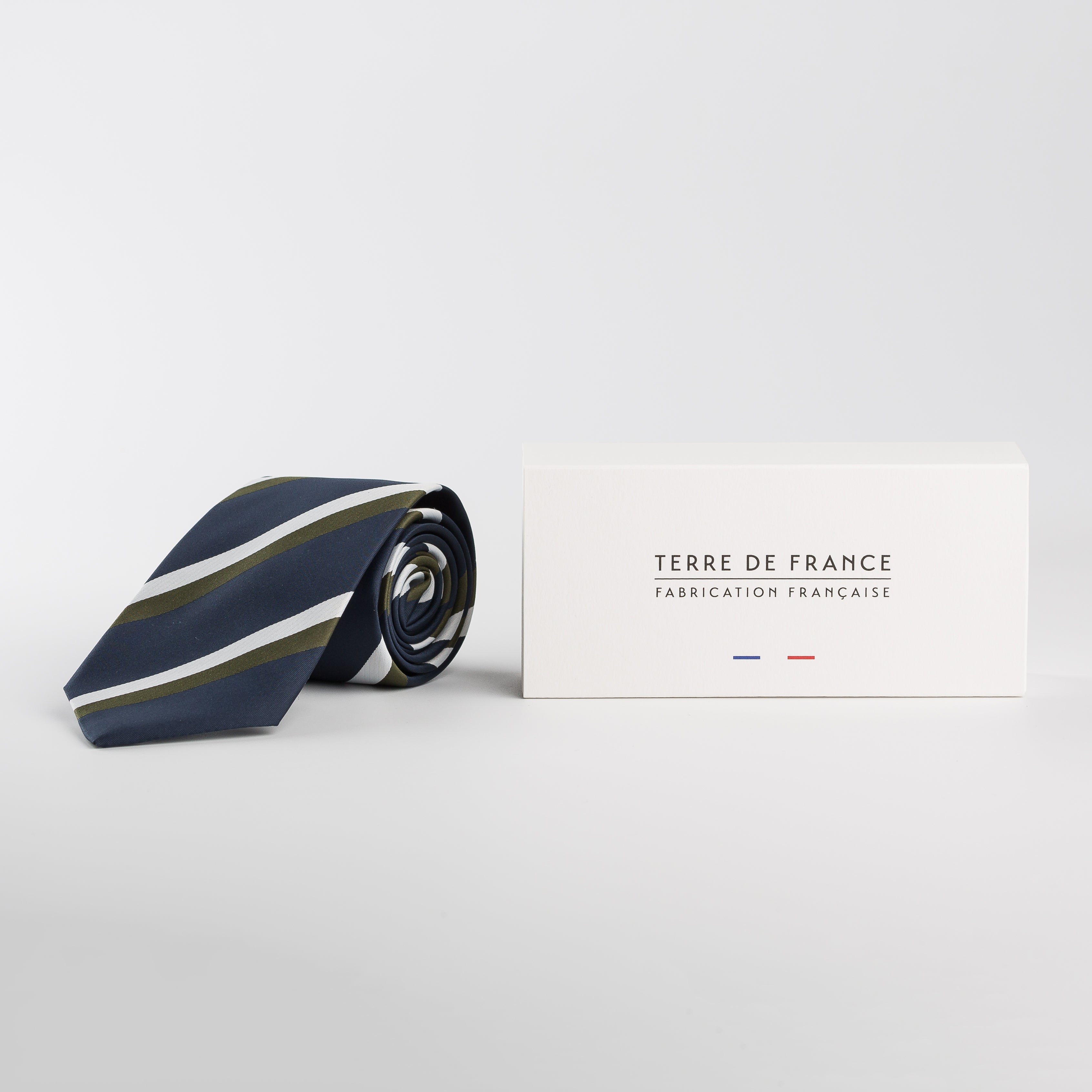Voici notre cravate Terre de France, au motif rayé traditionnel.